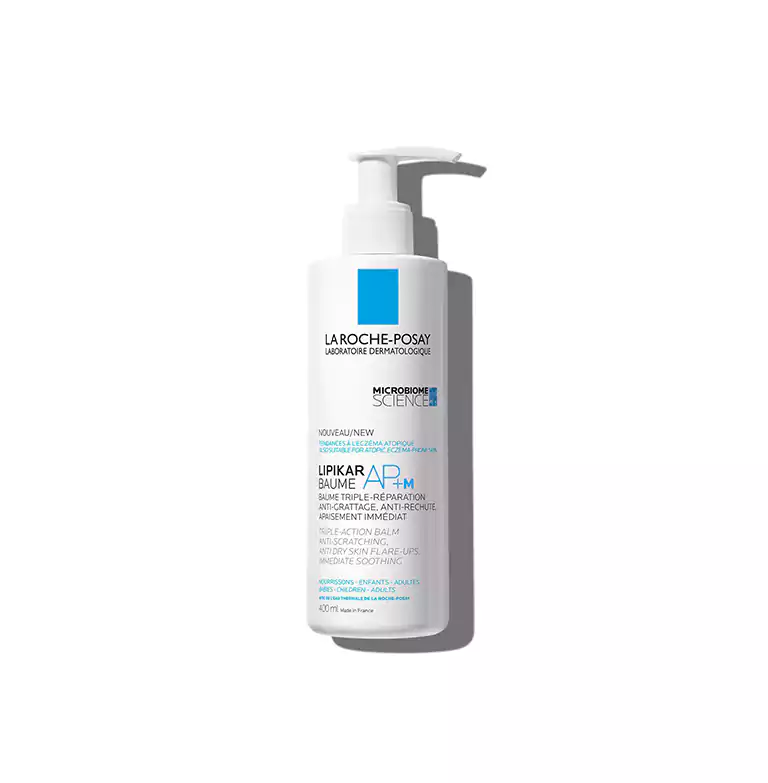 Le baume relipidant Lipikar AP+M est une crème hydratante corps conçue pour les peaux sèches à très sèches et à tendance atopique de toute la famille. Sa formule contient du beurre de karité, de l’Aqua Posæ Filiformis, du Microrésyl, de la niacinamide, de la glycérine et de l’eau thermale La Roche-Posay qui rééquilibrent le microbiome cutané et aide à espacer les pics de sécheresses sévères. La peau est instantanément apaisée, confortable et protégée. Les sensations de grattage sont immédiatement atténuées, pour un bien-être durable.